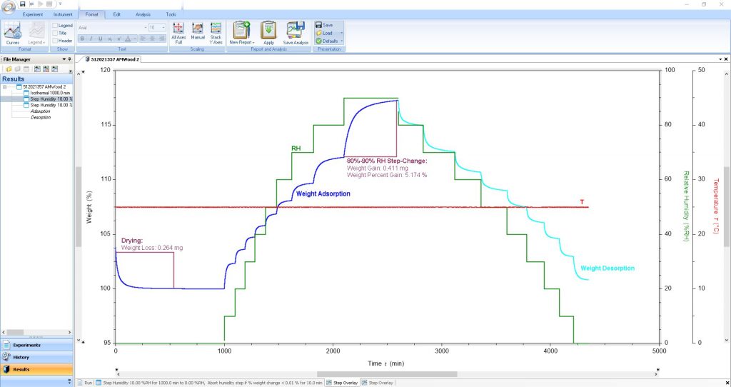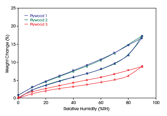 Wood is a key natural resource and a versatile material used in building and construction applications. Its structural properties vary with the water content and it is subject to natural decay processes. Therefore, it is necessary to understand the water sorption in wood as a function of humidity.Protection of wood can be achieved by preventing water transport across the material, through sealing the surfaces and treating the wood so that it does not absorb moisture. The analysis of the susceptibility of wood to natural decay and the suitability of wood for construction can be performed through vapor sorption measurements.