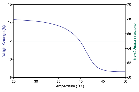 The QHM-SA100 TRIOS software has a built-in humidity verification feature and deliquescence method that allows the user to determine the humidity level at the sample. The method conforms to ASTM E2551.