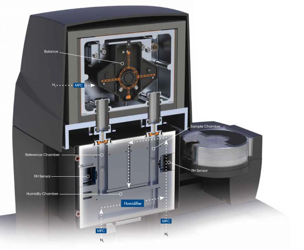 Autosampler and humidifier autofill pump allow for programming experimental queues of up to 10 or 25 samples. Even at high humidity and temperature or long lasting measurements, 24/7 productivity and absolute reliability are provided without user interaction.