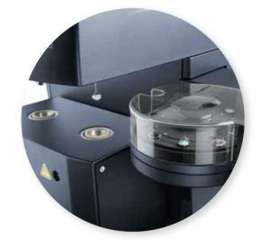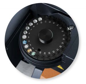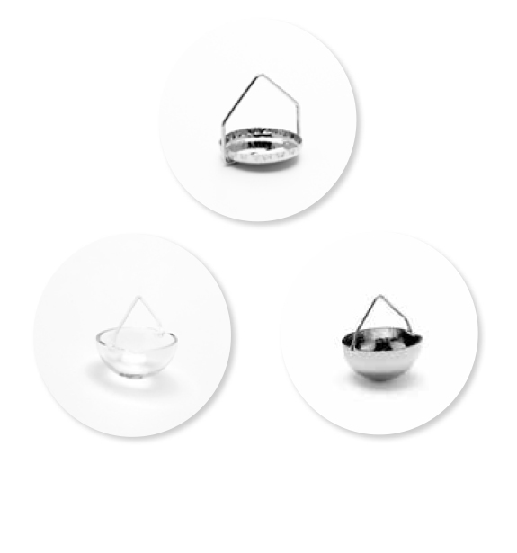 Semispherical quartz, metal-coated quartz (180 μL) and optional platinum (100 μL) sample pans are available for use with the QHM-SA100. The former are commonly used in sorption analysis because of their large volume, anti-static capabilities and open design, allowing good gas-sample contact and fast equilibration. Platinum pans are generic for TGA analysis of most materials, provide a good contact between sample and gas and can improve productivity with the 25-position autosampler tray. Sealed aluminum pans are available for ensuring the integrity of materials which readily adsorb moisture or lose volatiles. The sample is loaded into the aluminum pan which is then sealed with a lid before placing it in the autosampler tray. The isolated sample in the closed sample pan is not exposed to the environment. Immediately prior to loading the sample pan in the balance, the lid is automatically opened by the pan punch device in the autosampler.