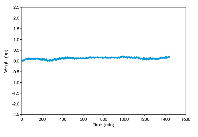 Test Condition Baseline Stability Isothermal at 25 °C and 20% RH over 24 h ±0.25 μg RH-ramping 5% to 85% ±1 μg T-ramping 25 °C to 85 °C ±1 μg