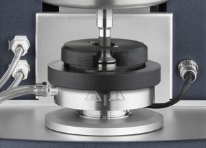 The Advanced Peltier Plate’s simple bayonet-style locking ring facilitates the effortless attachment of a wide range of different lower plate covers including hard-anodized aluminum, titanium and stainless steel plates with smooth, sandblasted or crosshatched surface finishes. Standard disposable aluminum plates expand the capabilities of the system to test curing materials using a single Peltier Plate.