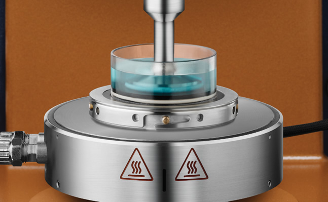 The Advanced Peltier Plate’s Immersion Cup adds the capability of characterizing material properties when completely immersed in a fluid. It is easily attached to the top of the Advanced Peltier Plate through the bayonet fixture and gives access to the sample for loading, trimming, and subsequent sealing and filling – a rubber ring provides the fluid seal. The Immersion Cup is ideally suited for investigating hydrogel materials and can accommodate plates or cones up to 40 mm in diameter.