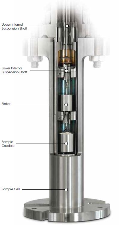 - Non-contact sample weighing enables hermetic separation between sample cell and balance, eliminating risk of balance damage from reaction gases, pressure or temperature inside the sample cell