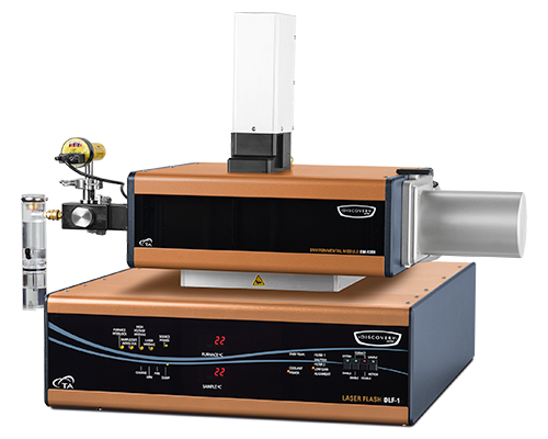 The Discovery Laser Flash DLF 1200 is a compact benchtop instrument for the measurement of thermal diffusivity, thermal conductivity, and specific heat capacity of materials from room temperature to 1200˚C. It features a proprietary laser source with 17 Joules of energy for testing of the widest range of samples under the most demanding conditions. Productivity is no problem with the four-sample tray design. It is the only benchtop light flash instrument available with a laser pulse source for enhanced precision, accuracy and capabilities beyond competitive Xenon light source designs.