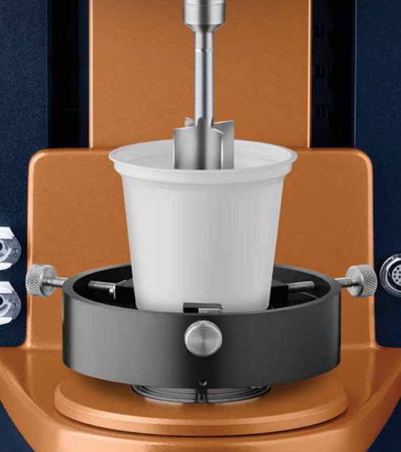 The Generic Container Holder is a Smart Swap™ option that can hold any container with an outer diameter of up to 80 mm for characterizing materials with rotors. This allows for quick off-the-shelf evaluation of materials, such as paints and varnishes, creams, pasta sauce, etc., without creating large shearing from sample loading. It also is an excellent platform for beakers or jacketed beakers.