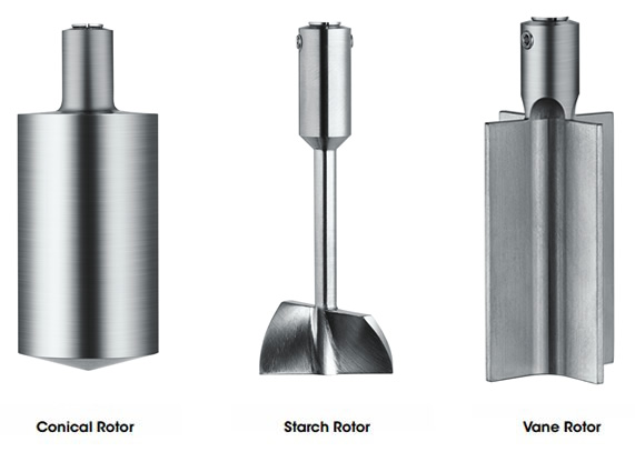 The Pressure Cell Accessory is compatible with any of three rotor designs. The standard rotor is the Conical Rotor, which is ideal for the quantitative measurement of liquids. Suspensions and slurries may be more well-suited to testing using the Starch Rotor, which prevents settling, or the Vane Rotor that is tolerant to larger particles and inhibits slip.