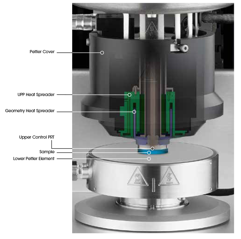 Taraws’s patented heat spreader technology conducts heat directly to the sample to ensure uniform sample temperature in vertical and radial directions. Unlike competitive designs, this technology provides accurate measurements at all testing gaps, which facilitates sample loading and sample preparation options, especially for thicker samples.
